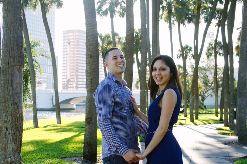 In high school I wasn’t exactly shy, or quiet. I was enrolled in every art class possible and talked to everybody. So either you had a great appreciation for my loud- ambitious self; or you hated it. Jennifer and myself went to high school together so I when I received an inquiry for her I was excited since we had went to the same high school together! I remember Jennifer as being really quiet and shy, and since I was the complete opposite I was surprised she reached out to me (but not complaining!) It was nice to get together and talk a little bit about my hometown and old friends. Jennifer and Scotty took on a two hour drive to Tampa to shop and get together for this session. University of Tampa is versatile, large and around Christmas time decorated to perfection. I had never met Scotty before but the few hours we go to spend together was enough for me to appreciate his relaxed attitude. As long as Jennifer was happy he was too. They get married soon and I am excited to see what the wedding will bring ( Cape Coral Yacht Club )